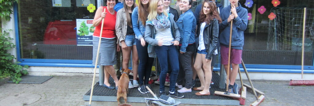 Die Fläche vor dem Eingang, der Eingang, das Gelände um die Tischtennisplatte, Treppe und unterer Parkbereich, alles wurde mit viel Schwung und Lachen gekehrt, geputzt, gereinigt…